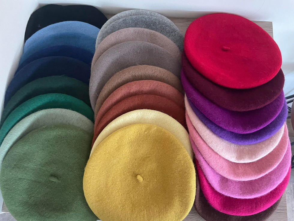 Hand embroidered beret, embroidered flowers, 100% wool beret with pure s